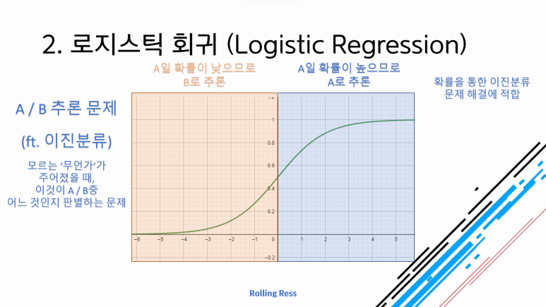 내부적으로는 로지스틱 회귀라는 알고리즘을 사용합니다. 지금 보이는 그래프는 시그모이드 함수인데, 정의역은 실수 전체, 치역은 (0, 1)입니다. 여기에 그냥 100을 곱해주면 확률(%)이 되기 때문에, 확률을 계산할 때 많이 사용합니다. 우리도 내부적으로는 시그모이드 함수를 이용해 확률 계산을 하고 있어요. 그런데 여러분에게는 확률을 사용할 필요가 없기 때문에 제가 해당 기능을 빼버린 겁니다. 사실 만들기 귀찮았...읍읍..