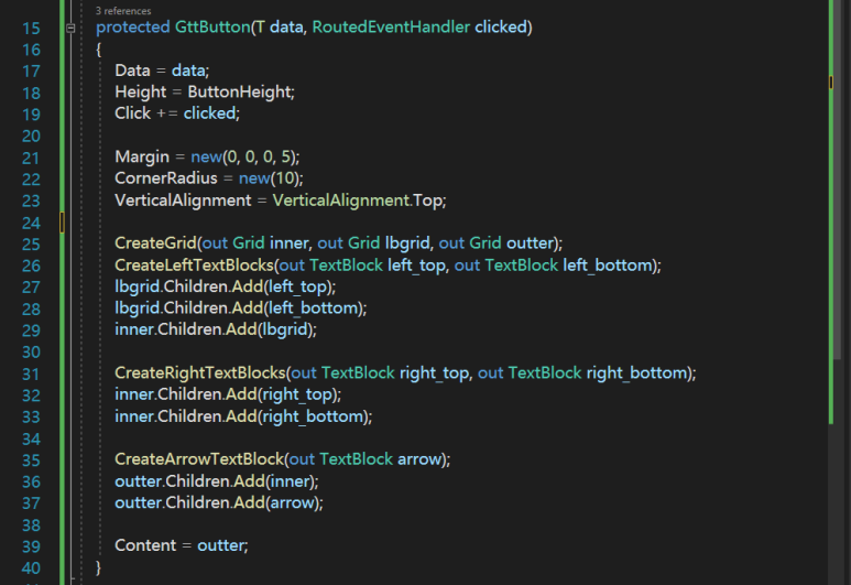 새롭게 구성한 GttButton<T>의 생성자입니다. 어차피 abstract 클래스라 인스턴스 생성이 불가하니, 명시적으로 protected 레벨로 선언했습니다. 우선 오늘은 여기까지 하도록 하죠. 피곤하네요.