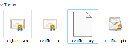 CMD에서 위 명령어를 입력하여 crt, key 파일을 합쳐 pfx 파일을 만듭니다. ZeroSSL 기준 private.key로 이름이 되어 있을 텐데, 반드시 certificate.key로 이름을 바꾸어야 합니다.