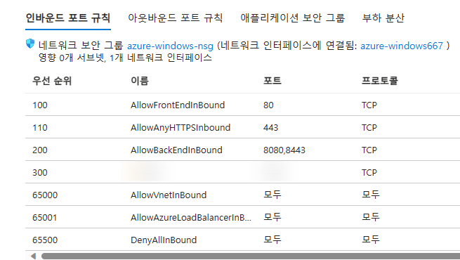 원격지 서버에서는 Windows Server 2022를 사용중입니다. 꼭 필요한 포트만 열어두어야겠지요? 기본적으로는 모든 포트가 DenyAllInBound옵션에 의해 막혀있습니다. 여기서 HTTP로 통신할 80, 추후 HTTPS로 통신할 443 포트를 열어줍니다. 이 둘은 프론트에서 작동합니다. 백엔드 포트는 8080과 8443 포트를 사용하는데, 개발용으로 열어두겠습니다. 사실 뭐 사용자 정보를 저장하는 것도 아니고, 민감한 내용은 아니라서 열어두어도 그렇게까지 문제가 되지는 않을 거예요. 안전불감증...