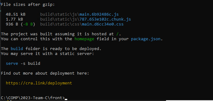 다음으로 "npm run build"를 입력하여 배포용 앱을 생성합니다. 보통 npm start 해서 로컬에서 테스트하는 경우가 많은데, 이걸 그대로 쓸 순 없습니다. 그것도 사실 Node 기반으로 돌아가는 거거든요. 여기서는 Windows Server에 내장된 IIS(Internet Information Service) 서버를 이용하도록 하겠습니다.
