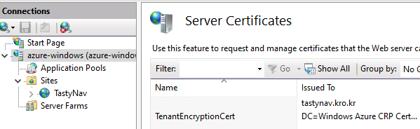 완료되면 서버로 pfx 파일을 전달한 뒤, IIS 세팅에서 서버 인증서에 pfx 파일을 등록해주면 됩니다.