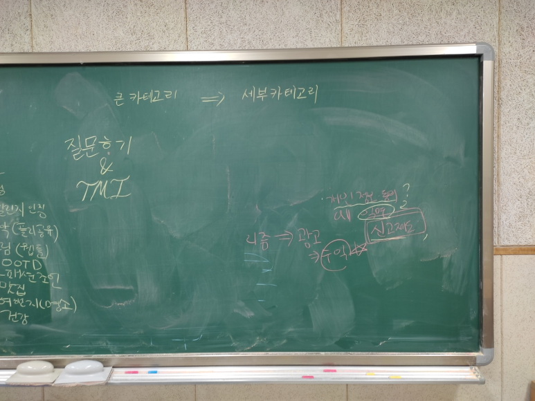 이렇게 몇 가지(가 아닌데?) 다양한 아이디어를 꺼냈습니다. 이걸 큰 카테고리 두 개로 묶어 게시판 형태로 만들기로 한 거죠?