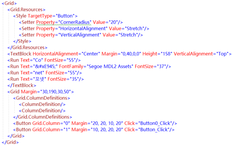 참고로 저 버튼은 저렇게 생겼습니다. 이게 XAML에서 디자인을 하면 쉬운데... 동적 버튼이라 C#에서 해야 합니다. 그래서 조금(?) 길어요. 그래도 한 번 만들어두면 재탕할 수가 있으니 효율은 나쁘지 않습니다.