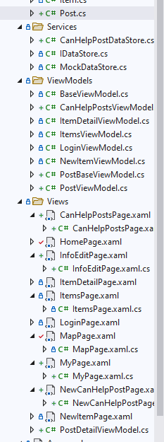 Xamarin.Forms 기반 앱들은 대부분 MVVM 패턴으로 구현되어 있습니다. Model - View Model - View의 순서로 구축되는 것이죠. 모델은 데이터, 뷰는 사용자 화면, 뷰모델은 그 중간입니다. 디자이너께서 뷰와 모델을 만들어주셨으니, 저는 그걸 가지고 뷰모델을 만드려고 합니다.