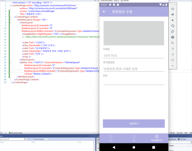 뒤는 이 페이지를 만드는 데 사용한 코드이고, 앞은 결과물입니다. 위와 같이 만들어질 예정입니다. 저장하기 버튼을 누르면 저장 후 나갈 수 있고, 그냥 왼쪽 위 화살표를 누르면 저장하지 않고 나갈 수 있습니다.